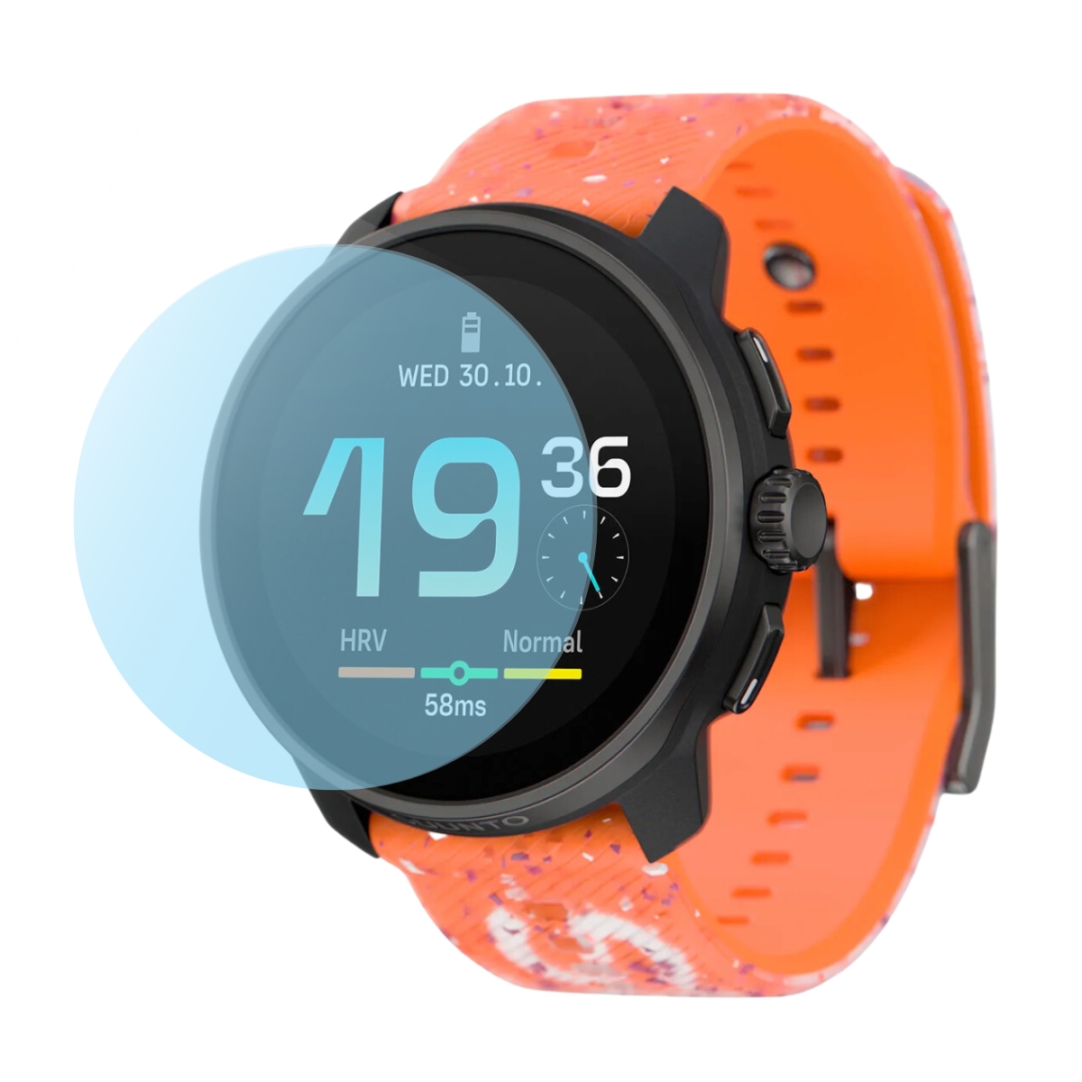 Skärmskyddet till Suunto Race S har en hårdhet på 9H, vilket gör det mycket svårt att repa. Glaset är praktiskt taget antireflexbehandlat, mycket klart och har optimal genomskinlighet. Glaset är endast 0,3 mm tjockt, diameter 38 mm och levereras med en våt och torr trasa för rengöring av skärmen. Glaset limmas fast på skärmen genom att ta bort skyddsfilmen på den självhäftande sidan och placera glaset över originalglaset. Passar endast för Suunto Race S-klockor.
