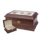 ‌Låsbart klassiskt smyckeskrin i trä. Två plan, och inredning av mjuk beige sammet. Mått 25x 16 x 11 cm.