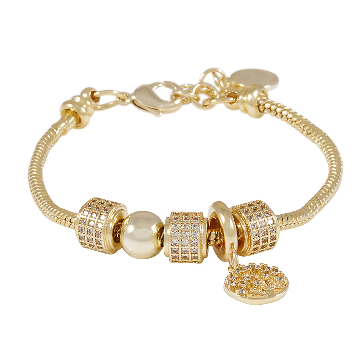 Det glittrande och stiliga Snö of Sweden Cicce Coin armbandet är tillverkat av förgyllt mässing och dekorerat med glittrande klara zirkoniastenar som ger det en lyxig glans. Det passar utmärkt både till vardags och fest och är en utmärkt presentidé eller ett tillskott till din smyckeskollektion. Den justerbara längden säkerställer en bra passform.