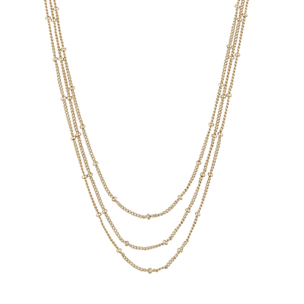 SNÖ of Sweden Jen tassel necklace 45 plain g 1343-0645257 är pläterat i äkta gult guld och utsmyckat med flera långa kedjor för en trendig look. Halsbandets storlek är 45 cm. Storleken på metallpärlorna är 2 mm.