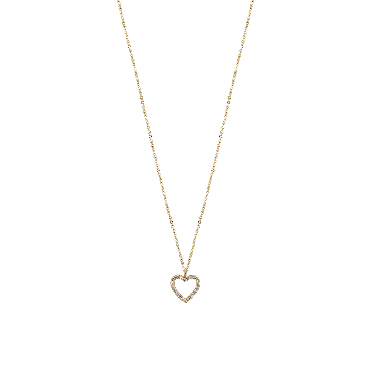 Snö of Sweden Valentina-halsbandet är ett delikat och romantiskt smycke som charmar med sitt vackra hjärthänge. Den öppna hjärtformen är dekorerad med glittrande zirkoniastenar, vilket ger smycket en elegant gnistra.