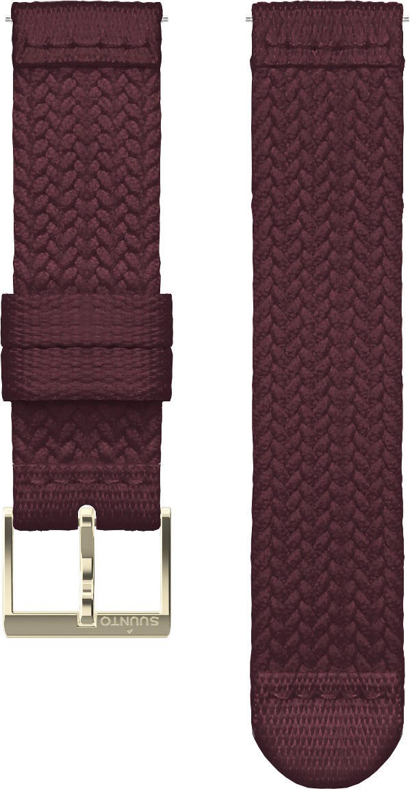 Suunto 20mm Athletic 5 Burgundy textilarmband SS050376000. Armbandet är utformad för daglig användning. Armbandet med snabblås är lätt att byta utan verktyg. Armbandets bredd är 20 mm och passar för handleden mellan 120mm-180mm. Egentligen armbandet är menad till Suunto Fitness 3 klockor men det passar ihop men andra modeller.