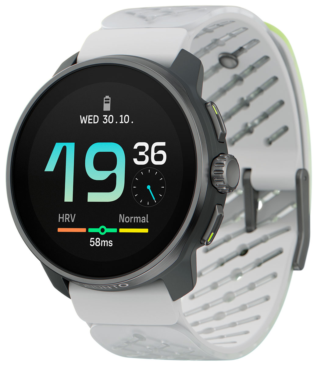 Suunto Race S innehåller avancerad träningsmätning; du får personlig feedback om träningsbelastning, framsteg och återhämtning, beräknad utifrån hjärtfrekvensvariabilitet (HRV). Kvinnor kan också spåra sina träningsdata och menstruationscykelns inverkan på dem via Suunto-appen. Appen Suunto Coach övervakar dina träningspass och ger råd för att hålla dig motiverad. Suunto Race S smartwatch är också byggd för att klara tuffa förhållanden. När du springer långa rundor eller tänjer på gränserna i en annan sport räcker batteriet i upp till 30 timmar medan du tränar oavbrutet med bästa GPS-noggrannhet. När du vill att batteriet ska räcka längre kan du optimera GPS-inställningarna för att få fler timmars användning och njuta av naturen. Batteriet räcker i upp till 5 dagar i "Tour"-läget.