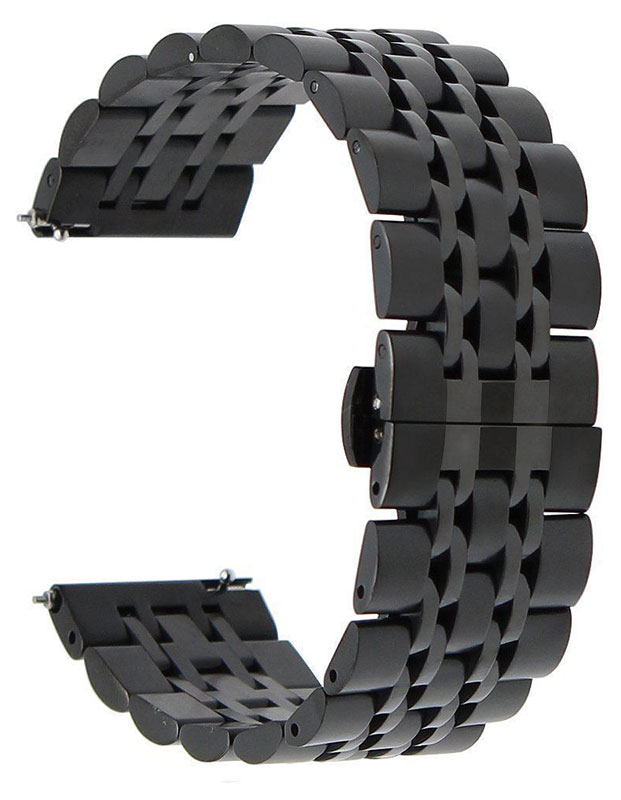 Svart armband i rostfritt stål med snabbfäste finns i 20 och 22 mm bredd. Armbandet fästs på klockan med hjälp av snabbfjädrande sprintar, vilket gör det enkelt att sätta på och ta av klockarmbandet. Armbandet har en dubbel spärr med tryckknappar som gör det enkelt att öppna och ta av armbandet från handleden. Armbandet är tillverkat av rostfritt stål och PVD-belagt i svart. Armbandet kan förkortas. Armbandets längd är justerbar mellan 120-180 mm. Armbandets vikt är 76 gram (20 mm armband).