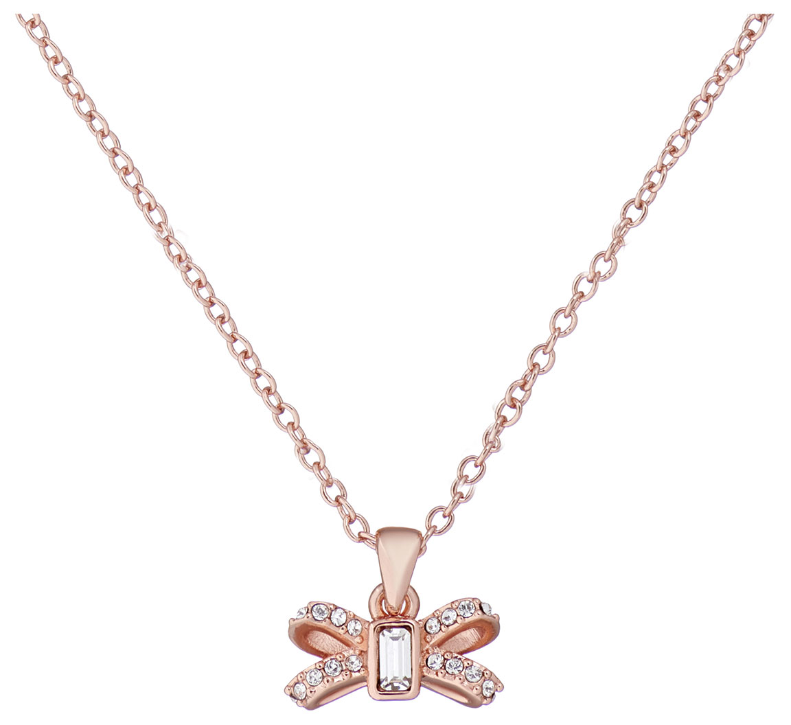 Ted Baker Sabena Crystal Sparkle Bow halsband TBJ2524-24-02 i roseguldfärgad mässing med rosett berlock och vita Swarovski kristaller. Ted Baker smycken har 1 års garanti och skickas hem i tillverkarens originalförpackning.