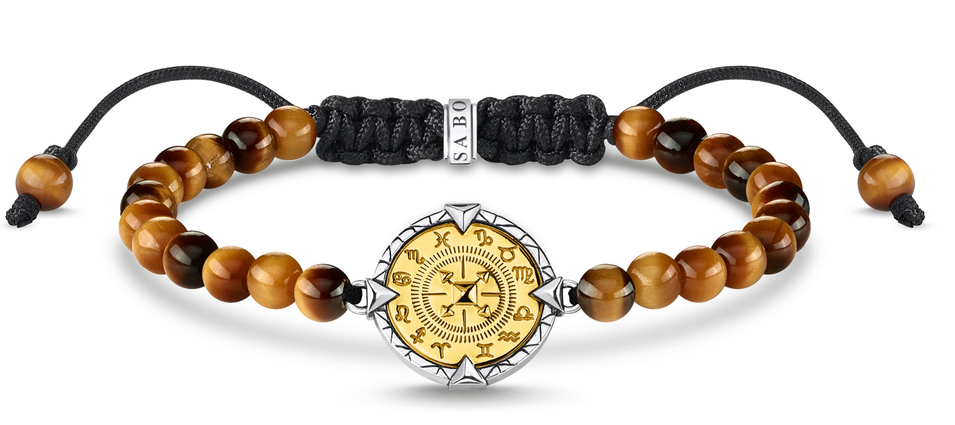 Thomas Sabo armband elements of nature tigers eye gold A2009-966-2-L22v med tigers öga pärlor och 18K guldpläterad berlock med symboler för eld, luft, vatten, och jord. Armbandet längd är justerbar mellan 15-22 cm. Thomas Sabo smycken skickas hem i tillverkarens original förpackning.