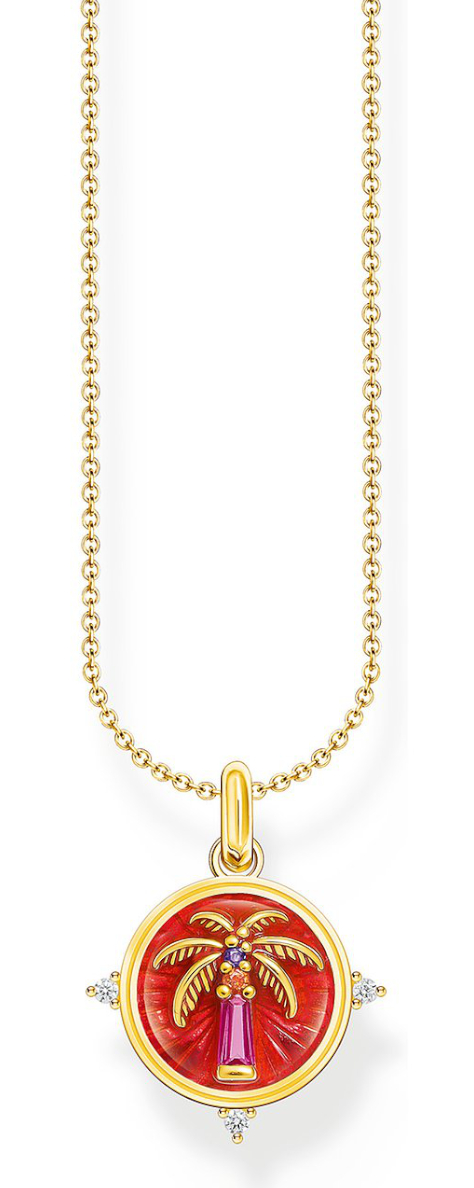 Thomas Sabo Charm Club Charming Festival halsband KE2204-471-7-L45v har vacker och färgglad emaljering. Kedjan och smycket är av 18 karats guldpläterat sterlingsilver och kedjelängden är justerbar mellan 40-45 cm. Thomas Sabo-smycket levereras i tillverkarens originalförpackning.