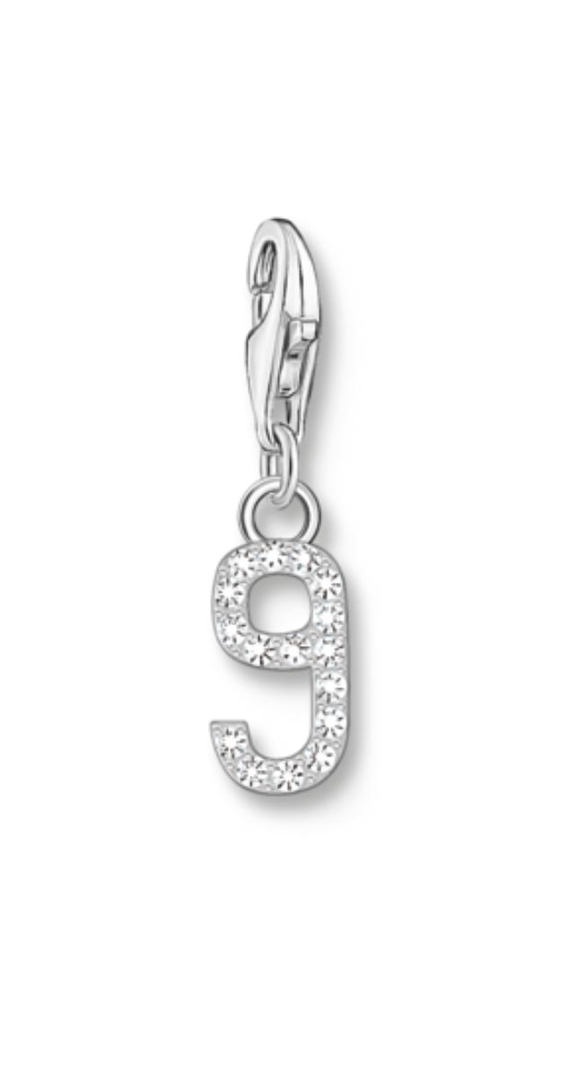 Bär dina favoritsiffror i form av ett smycke. Thomas Sabo Charm Club Charm 9 berlock 2133-051-21 är dekorerad med siffran 9 och är tillverkad i sterling silver. Smycket mäter 23 mm.