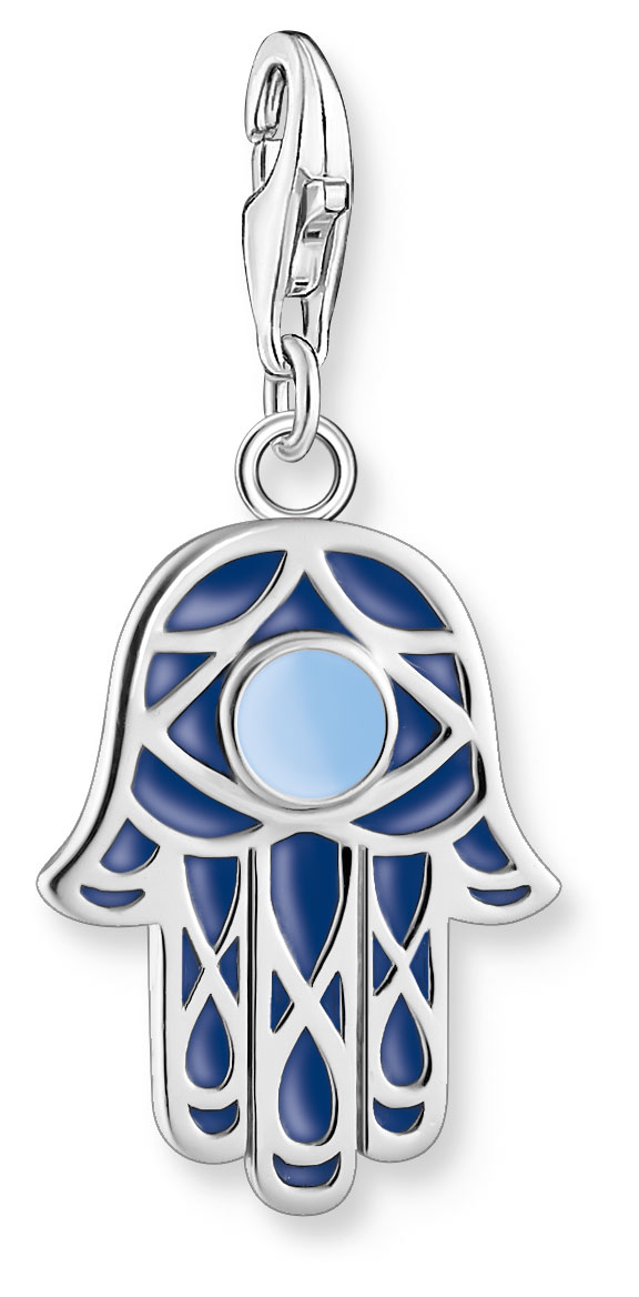 Thomas Sabo Charm Club Charmista Charm Fatima berlock 2020-007-1 är tillverkad av sterlingsilver och är dekorerad med blå emalj. Höjd 32 mm.