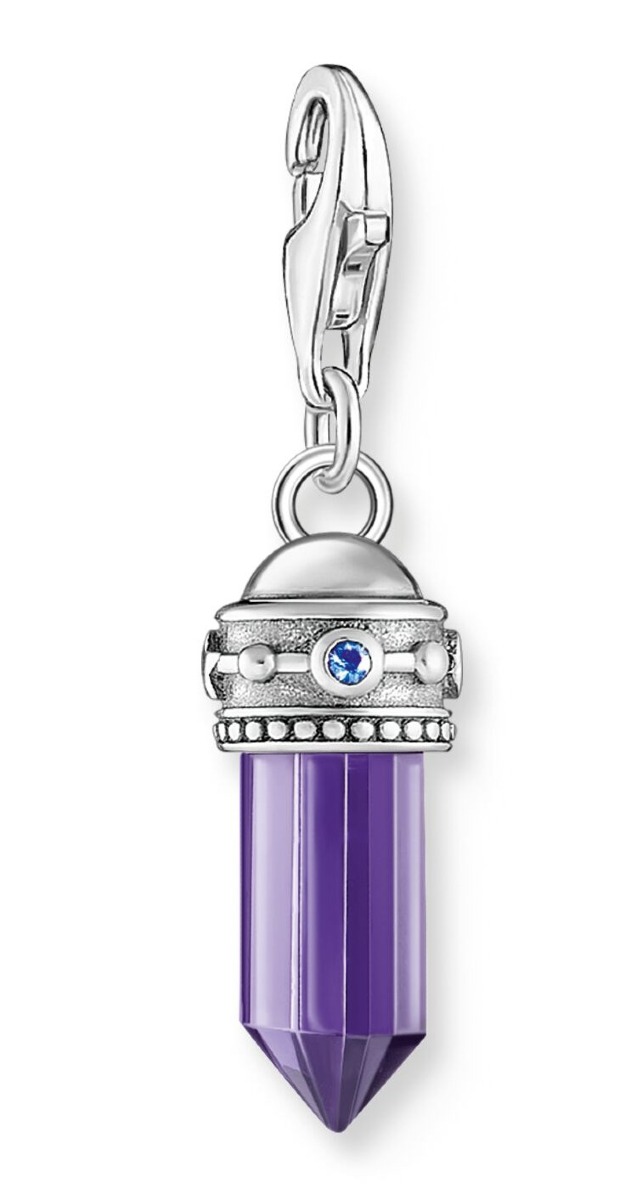 Thomas Sabo Charm Club Charm med sexkantig lila sten fina symboler silverberlock 2047-348-13 är ett spektakulärt stenhänge tillverkat av sterlingsilver. Berlocken är dekorerad med små briljantslipade glasskristaller, syntetiska korundi och en lila synthetic ametist. Hängsmycket mäter 29 x 7 mm.