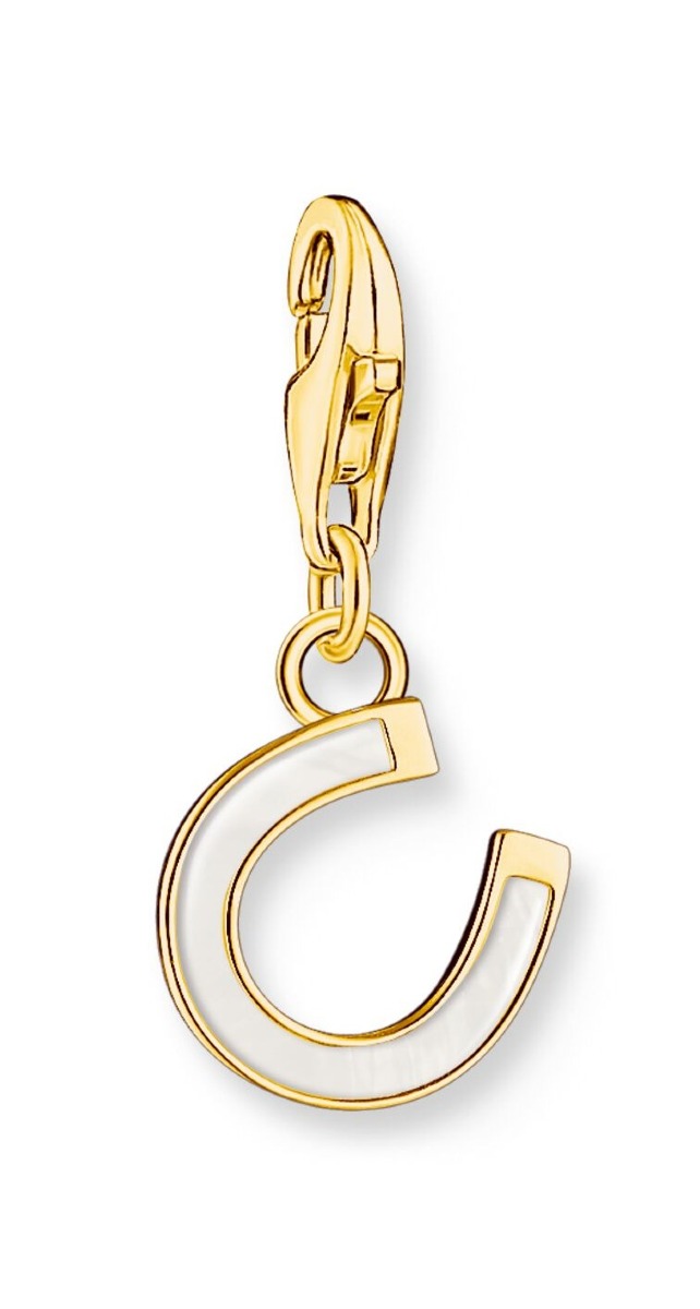 Thomas Sabo Charm Club Charm hästsko vit emalj gulförgylld berlock 2018-427-14 är tillverkad av 18 karat guldpläterat sterlingsilver och hästskon är dekorerad med vit emalj. Hästskohänget är 28 x 7 mm stort.