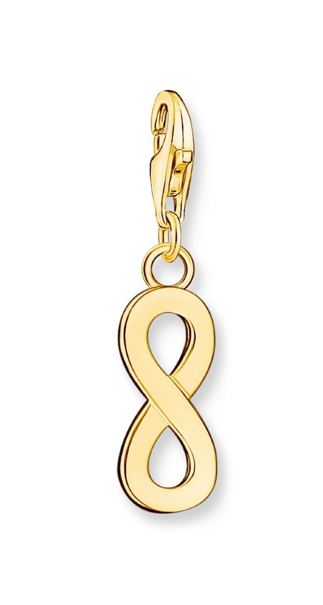 Thomas Sabo Charm Club Charm infinity gulguldpläterad berlock 1990-413-39 är tillverkad i 18 karats guldpläterat sterlingsilver. Storleken på hänget är 28 x 7 mm.