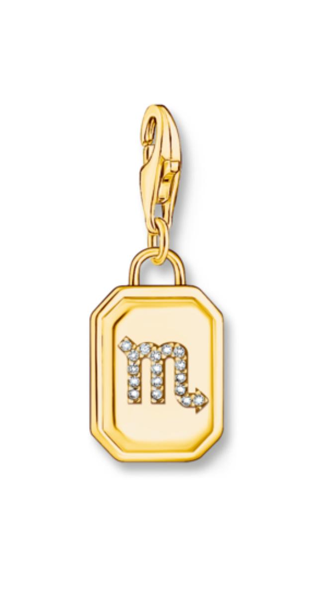 Thomas Sabo Charm Club Charm Scorpion berlock 2160-414-39 är utsmyckad med skorpionens stjärnstecken. Horoskophänge mäter 26 mm och är tillverkat i 18 karats guldpläterat sterlingsilver.