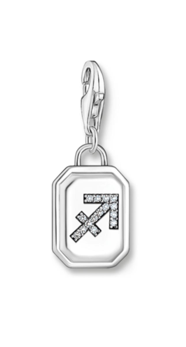 Thomas Sabo Charm Club Charm med Skytten-berlock 2144-643-21 är utsmyckad med Skyttens stjärntecken. Silver horoskophänge mäter 26 mm och är tillverkat av sterlingsilver.