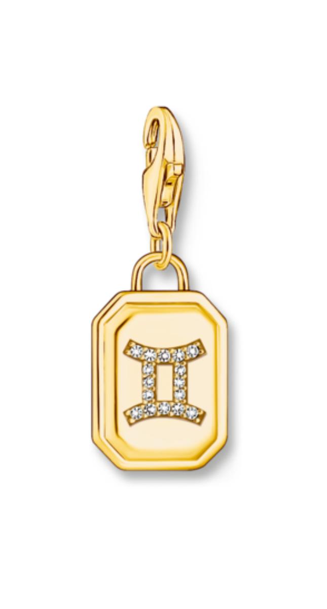 Thomas Sabo Charm Club Charm tvillingarna 2157-414-39 är utsmyckad med en tvillingarnas stjärntecken. Horoskophänge mäter 26 mm och är tillverkat av 18 karats guldpläterat sterlingsilver.