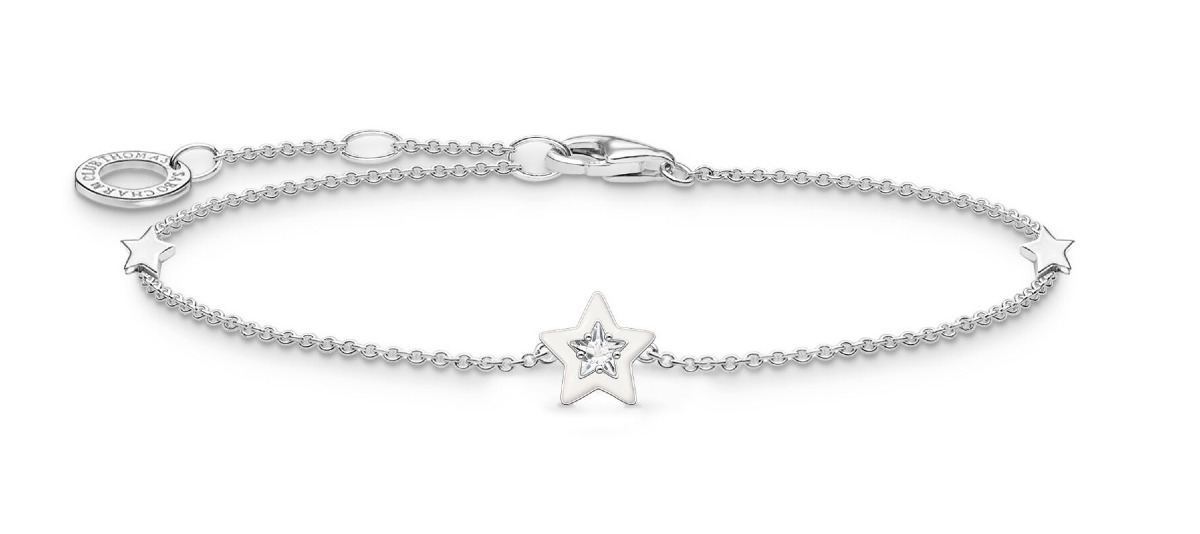Thomas Sabo Charm Club star charms white stones silver armband A2136-041-14-L19v