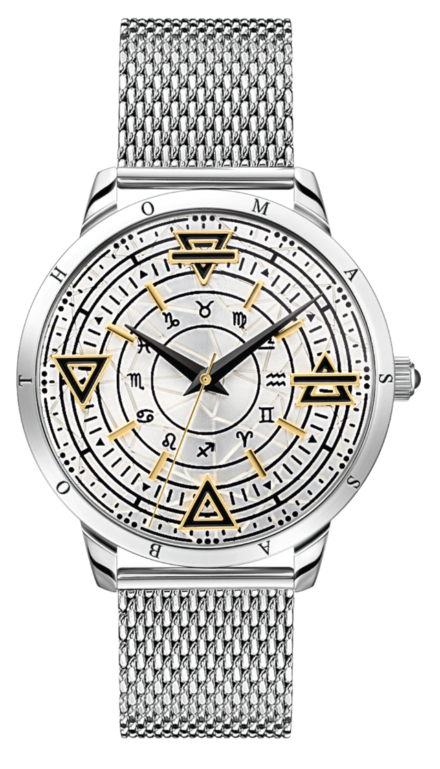 Thomas Sabo Elements of Nature spirit herrklocka WA0387-201-201-201-42 MM hämtar inspiration från de fyra elementen luft, jord, vatten och eld samt elementen i astrologi. Klockans urtavla visar symboler som fungerar som index och som lyser i mörkret. På den inre ringen finns 12 astrologiska symboler. Den här unika looken avslutas med ett mesharmband och svart onyx. Klockan har en vattentäthet på 5 atm och drivs av ett Miyota GL32 kvartsurverk. Hållbarheten förbättras ytterligare av en safirglasbeläggning över mineralglaset. Thomas Sabo-klockorna har två års garanti och levereras i tillverkarens originalfodral.