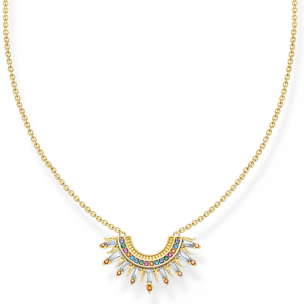 Thomas Sabo Festival-halsband KE2203-488-7-L45v har färgglada ädelstenar infattade i ytan. Kedjan och smycket är av 18 karats guldpläterat sterlingsilver och kedjelängden är justerbar mellan 40-45 cm. Thomas Sabo-smycket levereras i tillverkarens originalförpackning.
