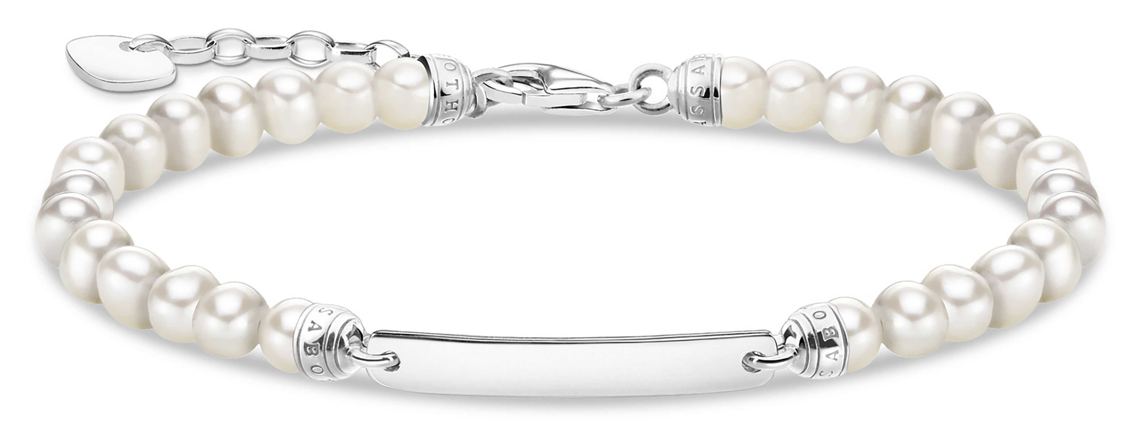 Thomas Sabo Glam & Soul White A2042-082-14 är ett klassiskt armband i sterling-silver med äkta sötvattenspärlor och en gravyrplatta 27 mm i diameter. Kedjas längd är justerbar mellan 16-19 cm. Thomas Sabo smycken skickas hem i tillverkarens originalförpackning.
