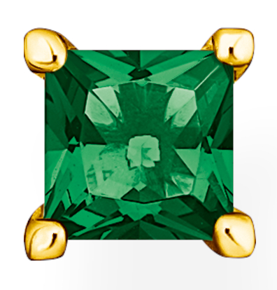 Thomas Sabo green stone gold H2233-472-6 örhänge är dekorerade med en enda kroninfattad, prinsess-slipade, syntetiska zirkoner och pläterad med 18-karats guld. Juvelen har en diameter på 5,7 mm. Örhänget säljs individuellt och är lätt att bära som en extra accessoar i örsnibben. Thomas Sabo-smycken levereras i tillverkarens originalförpackning.