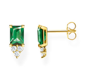 Ett par Thomas Sabo örhängen green stone gold H2173-971-6 lyxig örhängena smyckad med en smaragdgrön glas sten och vita kubiska zirkonia stenar. Tillverkad i 18K guldpläterad sterling silver. Mått: 1,3 x 0,6 cm. Thomas Sabo smycken skickas hem i tillverkarens original förpackning.