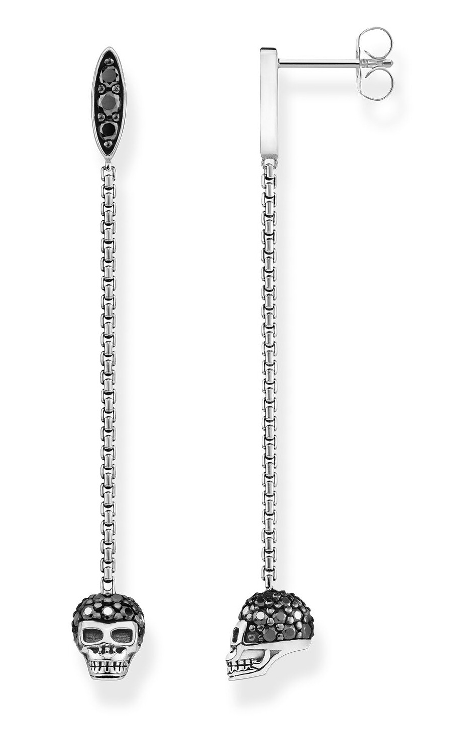 Silvrigt Thomas Sabo dödskalle H2164-643-11- örhänge i sterling silver och gnistrande zirkoner. Mått: 0,5 x 4,8 cm. Thomas Sabo smycken skickas i tillverkarens originalförpackning.