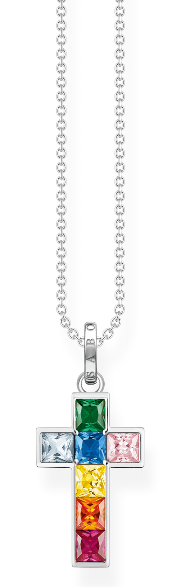 Thomas Sabo Rainbow Heritage hyllar sommarnätterna och det färgspektrum på natthimlen som gör sommarnätterna oförglömliga och magiska. Thomas Sabo Rainbow heritage cross colourful stones silver KE2166-477-7-L45V halsband har ett korshänge med en yta som är prydd med fyrkantiga syntetiska zirkoner och ädelstenar med princessa slipning. Storlek på hängsmycket: 12 x 27 mm, med en justerbar kedjelängd på 40-45 cm. Thomas Sabo-smyckena levereras i tillverkarens originalförpackning.