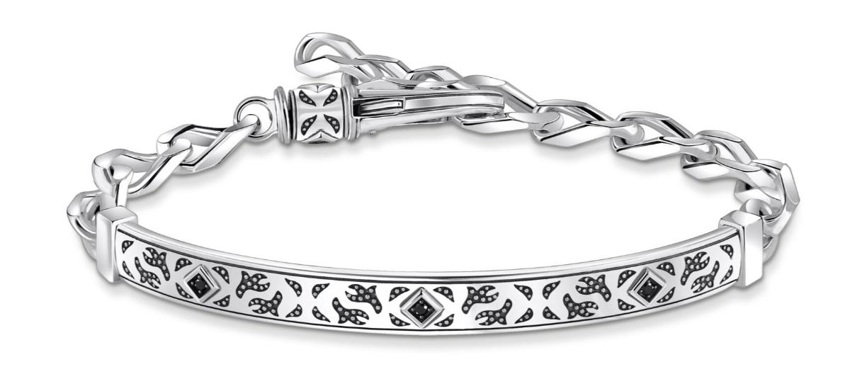 Thomas Sabo Rebel Wolf armband A2146-643-21 är tillverkat av återvunnet silver och dekorerat med svarta zirkonia. Armbandet mäter 7,5 mm i bredd och finns i två olika längder, 19 och 21 cm.