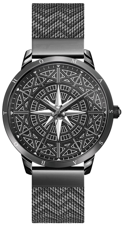 Thomas Sabo Spirit Cosmos compass svart WA0374-202-203-42 MM - en maskulin herrklocka som passar vid varje tillfälle. Boettens bredd är 41 mm och mesh-armbandets bredd är 20 mm. Boettens tjocklek är 9,8 mm. Klockan är utrustad med ett japansk Miyota GL32 urverk.