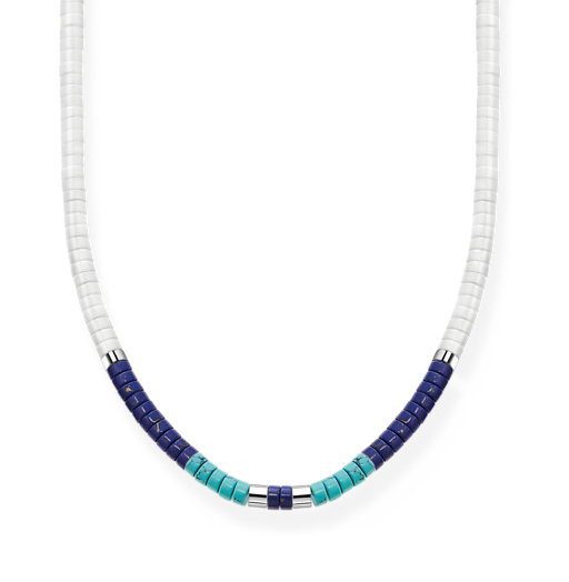 Thomas Sabo with blue stones KE2159-058-7-L38V är ett fint halsband med tropisk modestämning. Halsbandet är prydd med sterling silver berlocker, syntetiska turkos pärlor, lapis lazuli och äkta agat pärlor. Kedjas längd är justerbar mellan 38-42 cm. Thomas Sabo smycken skickas hem i tillverkarens originalförpackning.