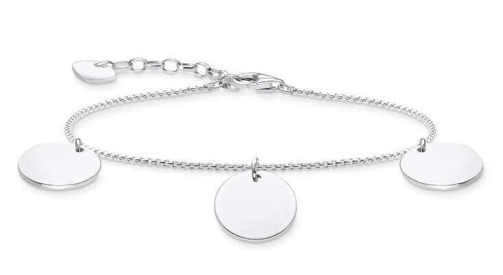 Thomas Sabo with three discs silver armband A1961-001-21-L19V. En vacker accessoar som kan bli väldig personlig med graveringen. Platsen för graveringen finns på dom tre berlockerna (max 10 tecken/berlock). Smycket är tillverkat i sterling silver och längden på det är justerbar mellan 16-19cm. Thomas Sabo smycken levereras i tillverkarens originalförpackning.