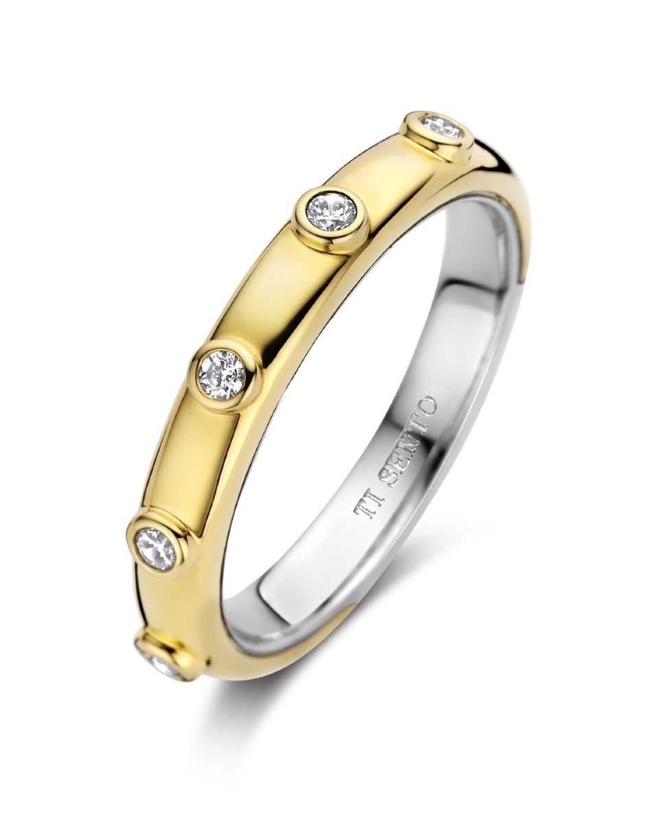 TI SENTO Golden hour guldpläterad silverring 12316ZY är infattad med flera briljantslipade syntetiska zirkonia. Ringens yta är pläterad med äkta gult guld. Storleken på ringen är 3 mm vid infattning och bredden på baksidan är 2 mm. TI SENTO smycken levereras i tillverkarens originalask.