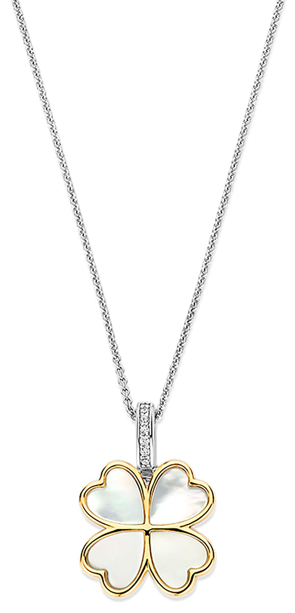 TI SENTO 6821MW är ett hänge tillverkat av högkvalitativt 925 sterling silver med en design av en förtrollande fyrklöver med gul guldplätering. Hänget är dekorerat med klar pavé-set zirconia, vilket gör hänget iögonfallande. Fäst den på något av dina favorithalsband för att skapa en personlig look som är unik för dig. Hänget är nickelfritt och allergivänligt. Kedjans längd 45 cm. Smyckets bredd är 17 mm och höjden är 25 mm.