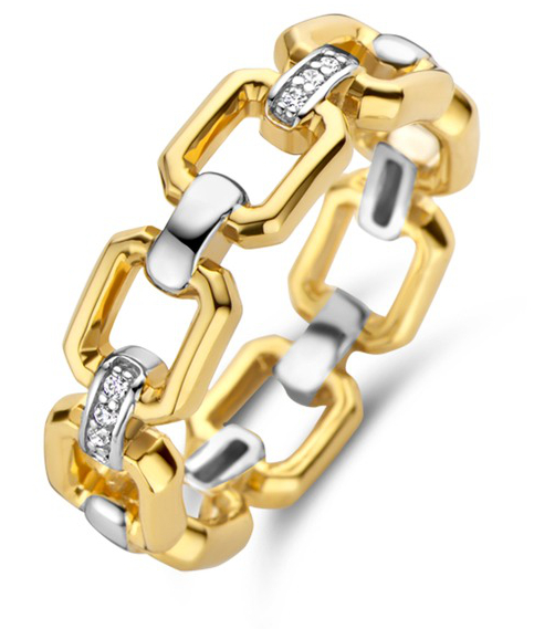 TI SENTO guldpläterad silverring 12292ZY/54 är en iögonfallande ring. Ringen är tillverkad i sterlingsilver och har 18 karats guldplätering och syntetiska zirkoner. Ringen mäter 54/17,2 mm. TI SENTO-smycken har 2 års garanti som täcker tillverknings och materialfel, och de levereras i tillverkarens originalförpackning.