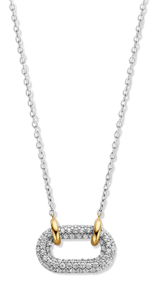 TI SENTO 34010ZY/42 halsbandet är tillverkat av sterlingsilver och pläterat med 18 karat gult guld. Hänget mäter 12 x 18,5 mm och är dekorerat med gnistrande zirkoner. TI SENTO-smycken har 2 års garanti som täcker tillverknings och materialfel, och de levereras i tillverkarens originalförpackning.