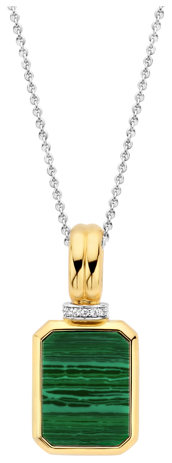 TI SENTO hängsmycke 6810MA i 18K guldpläterad sterling silver med grön malakit och vita kubiska zirkonia-stenar. Mått 12,50 x 26 mm. Kedjan säljs separat. TI SENTO-smycken har 2 års garanti som täcker tillverknings och materialfel, och de levereras i tillverkarens originalförpackning.