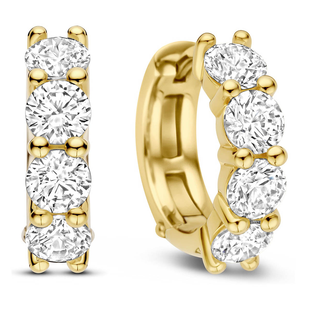 TI SENTO 78023ZY örhängen är tillverkade av 925 sterlingsilver pläterade med äkta gult guld och dekorerade med syntetisk zirkonia. De klassiska och mångsidiga örhängena är 12 mm långa och 3 mm breda.