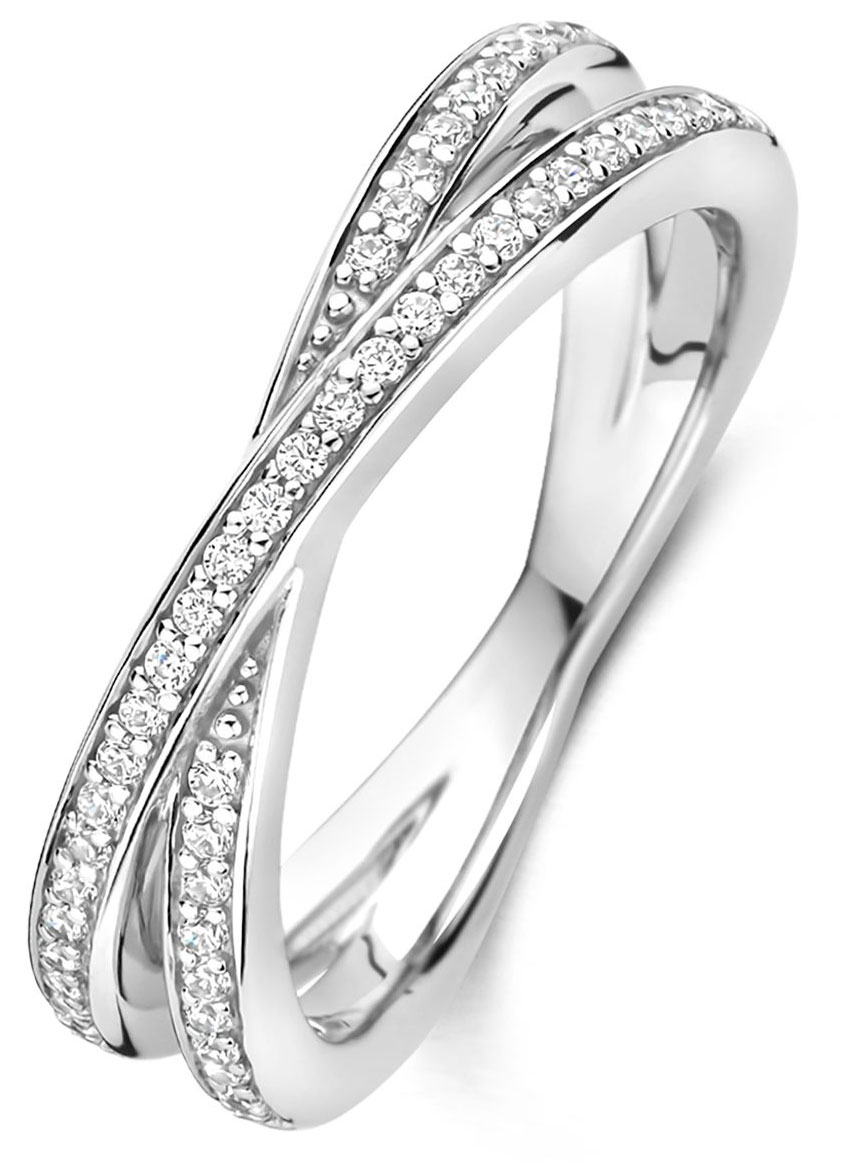 Minimalistisk sofistikering möter modern charm i TI SENTO 12373ZI-ringen. Tillverkad av högkvalitativt 925 sterlingsilver, har denna eleganta ring två tunna ringar som varsamt flätas samman i en sömlös korsningsdesign. Båda ringarna är prydda med pavéinfattade klara zirkoniastenar, vilket skapar ett bländande ensemble från alla vinklar. Ringen är nickelfri och allergivänlig, och är perfekt att kombinera med andra ringar eller subtilt bära ensam. Bågbredd upptill 5 mm, bågbredd nedtill 2 mm.