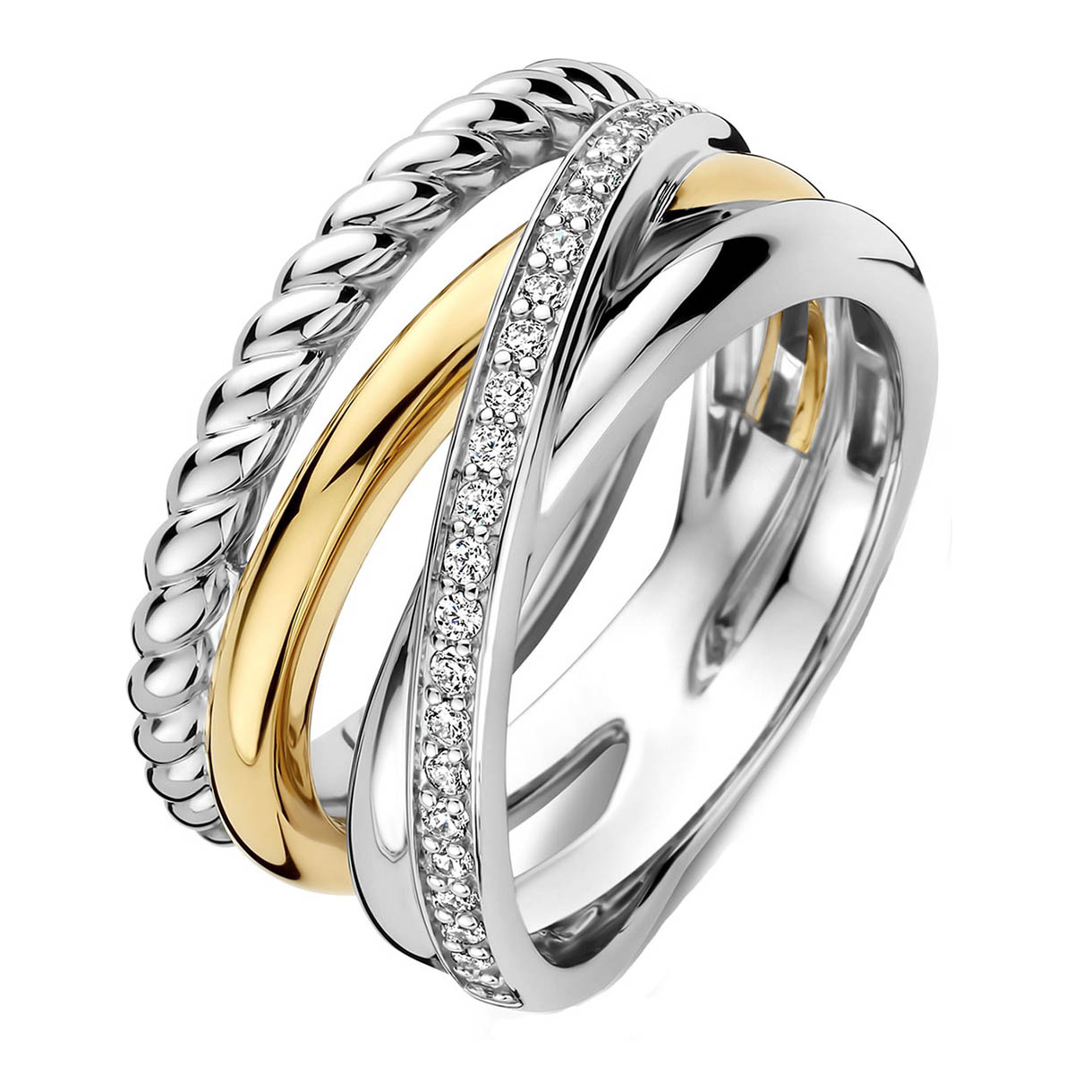 TI SENTO 12384ZY bred crossover-ring är tillverkad av 925 sterlingsilver och är dekorerad med syntetisk zirkonia. Denna fantastiska ring är platinapläterad, vilket förhindrar att smycket repas och håller ytan blank under lång tid. Bredd 15 mm.
