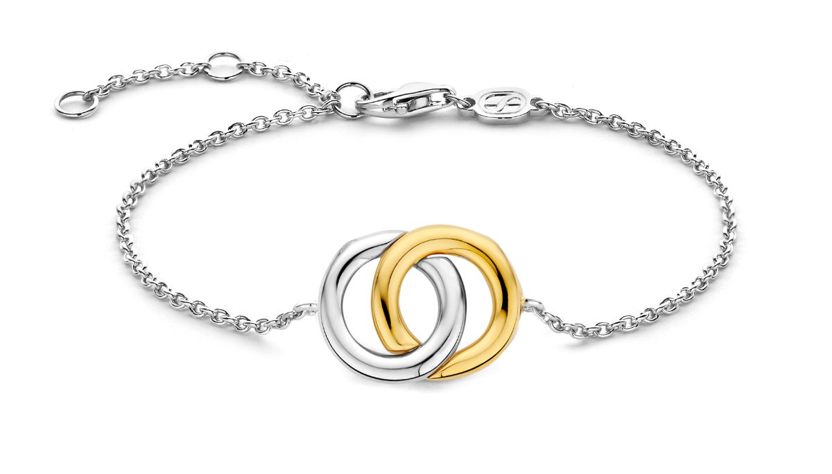 TI SENTO tvåfärgat armband 2790SY är en modern accessoar med en sammanlänkad guld- och silverring.