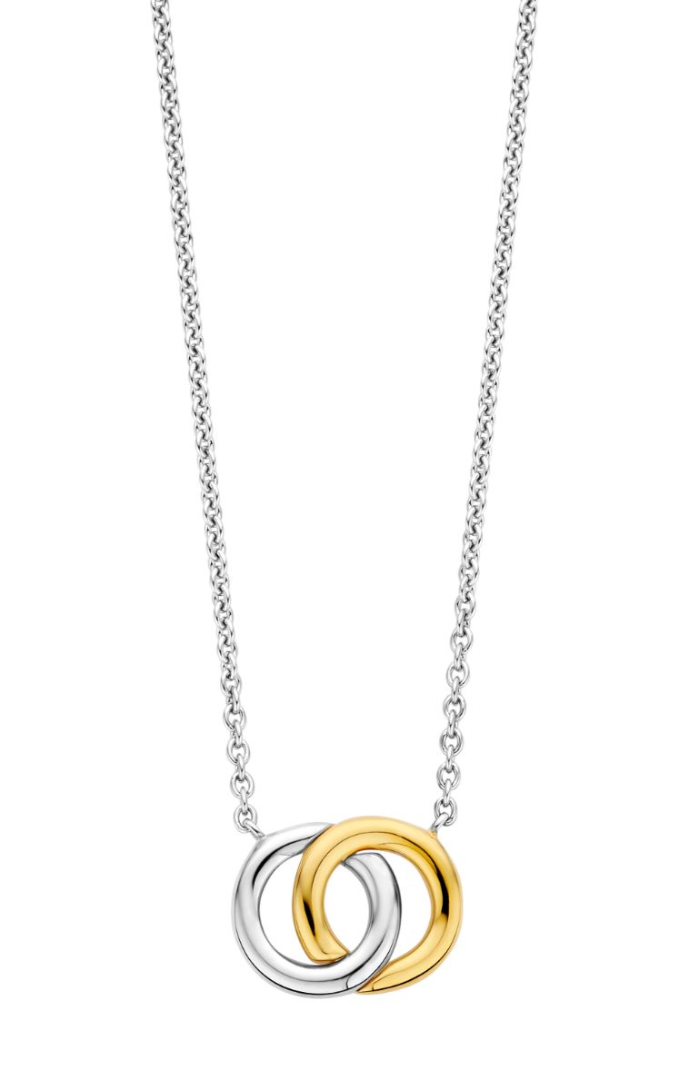 TI SENTO tvåfärgat halsband 3822SY/48 är en modern accessoar med en sammankopplad ringar i guld och silver. Halsbandets längd är justerbar från 38 till 48 cm, och helheten är försedd med äkta gulguld och platinaplätering som håller silvret glänsande under lång tid. Hängsmycket mäter 14 x 18 mm. TI SENTO-smycken är tillverkade av sterlingsilver och levereras hem till dig i tillverkarens vackra smyckesask.