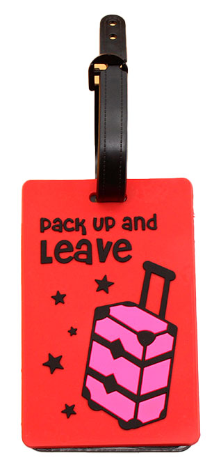 Bagagetaggen Tiera Red Luggage har en elegant bild av en rosa resväska mot en röd bakgrund. Texten "Packa upp och lämna" påminner användaren om att packa sitt bagage noggrant. Bagagetaggen är tillverkad av plast. Den är lätt att fästa på resväskan, så att dina kontaktuppgifter alltid följer med dig. På baksidan av taggen finns ett kontaktkort där du kan fylla i ditt namn, adress, telefonnummer och e-postadress.
