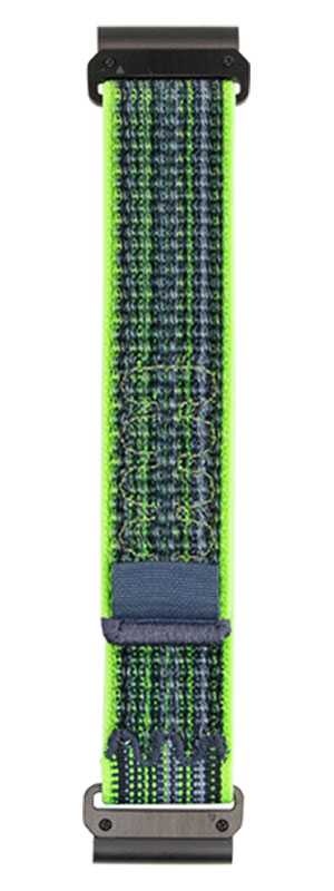 Tiera Garmin Fenix soft lime nylonarmband med 26 mm QuickFit är ett bekvämt nylonarmband för Garmin smartklockor med 26 mm QuickFit-mekanism. Klockarmbandets fästanordning är mycket lik Garmins QuickFit-mekanism. Armbandet har en snabbkoppling som gör det enkelt att fästa och ta av armbandet utan verktyg. Kompatibla smartklockor inkluderar Garmin Fenix 5X, Garmin Fenix 6X och Garmin Fenix 7X. Armbandet har ett kardborrefäste som gör att armbandet enkelt kan justeras. Det är också mycket lätt och enkelt att rengöra. Klockarmbandet levereras med 1 års garanti. Garantin täcker defekter i material och tillverkning. Den här klockarmbanden är inte tillverkad av Garmin. Det är ett tillbehörsarmband.