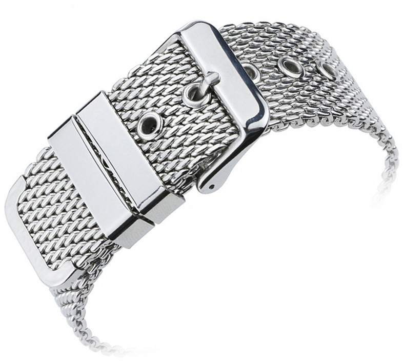 Tiera Thick Mesh Bracelet är ett mesharmband tillverkat av tjockare flätat stål med sölja. Armbandet är 2,8 mm tjockt och finns i bredderna 18, 20, 22 och 24 mm. Armbandet fästs på klockan med bandstift, vilket gör det enkelt att sätta på och ta av. Klockarmbandet är tillverkat av rostfritt stål och är stålfärgat. Armbandets längd är justerbar mellan 125 och 170 mm.