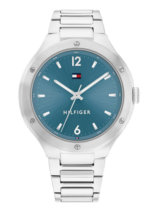 Den ljusblå urtavlan med silverfärgade visare och index ger klockan en mjuk och feminin känsla, medan den ikoniska Tommy Hilfiger-logotypen upptill på urtavlan tillför en tydlig känsla av varumärkesidentitet. Ett exakt kvartsurverk säkerställer pålitlig tidhållning, och det lätta silikonarmbandet gör klockan bekväm att bära både till vardags och på fritiden.