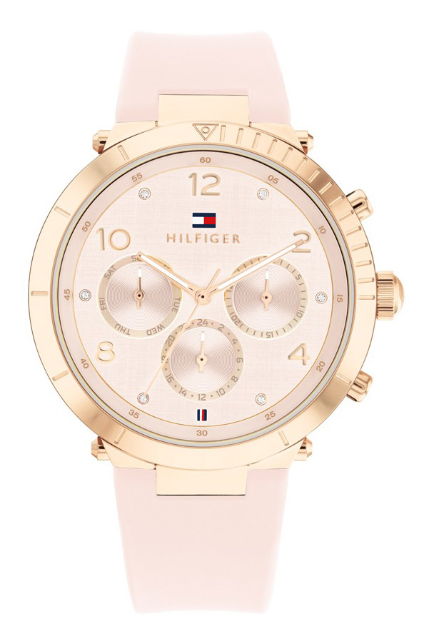 En elegant Tommy Hilfiger-damklocka för dig som uppskattar mjuka nyanser och modern design. Klockans boett har en diameter på 38 mm, och den ljusrosa urtavlan utstrålar diskret kvinnlighet.