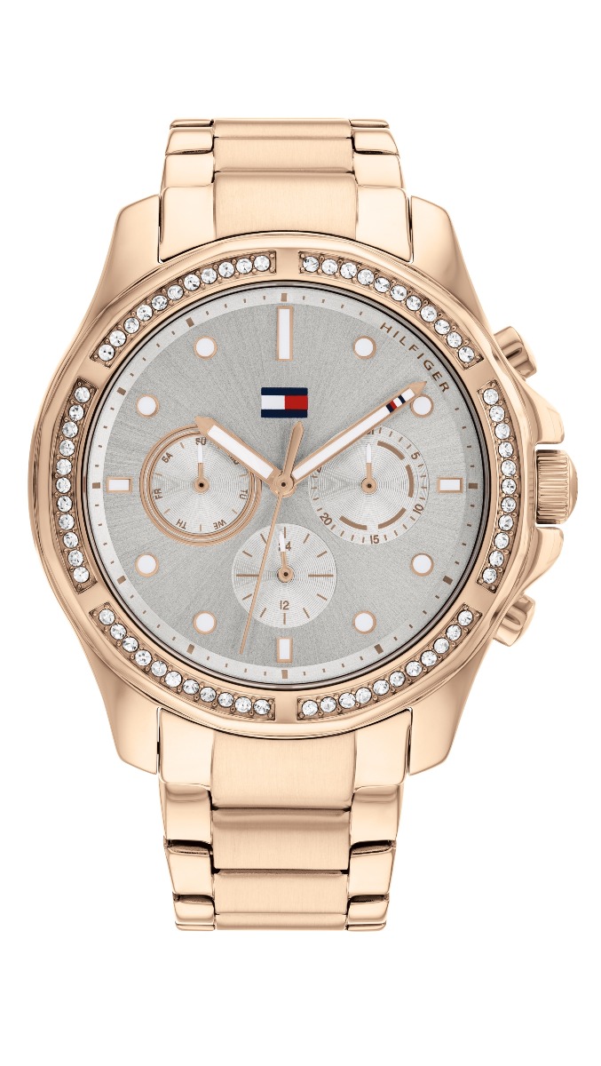 Tommy Hilfiger Brooklyn Rose gold 1782572 är en sportig och lyxig damklocka för dig som letar efter en lyx klocka.Klockan har en 41 mm bred boett, vilket innebär att den är lite större, och ett roséguldfärgat stålarmband. Klockan har tre subdialer för veckodag och datum samt en 24-timmarsklocka. Kristallinfattning på bezellen fulländar looken. Tommy Hilfiger-klockorna har en 2-års garanti och levereras i tillverkarens originalförpackning.