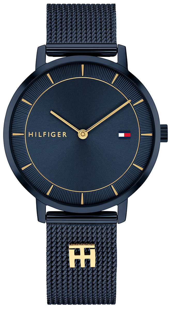 Tommy Hilfiger Tea 1782740 är ett snyggt och minimalistiskt kvartsarmbandsur för kvinnor med boett i rostfritt stål och mesharmband. Den blå urtavlan visar tydligt de guldfärgade minut- och timvisarna. Urtavlan skyddas av tåligt mineralglas. Det blå mesh-armbandet är dekorerat med Hilfiger-logotypen och mäter 160 - 210 mm i längd och 16 mm i bredd. Tommy Hilfiger Tea 1782740 är vattentät till 30 m / 3 atm, vilket innebär att den är stänksäker.