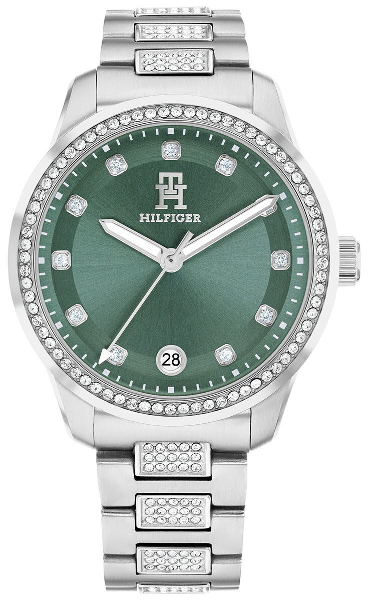 är tillverkad i rostfritt stål med en 36 mm bred och 10,1 mm tjock boett och ett silverfärgat stålarmband med en bredd på 17 mm vid fästpunkten. Mineralglas skyddar den gröna urtavlan med självlysande visare och index, en dagvisare vid klockan 6 och de tidigare nämnda glittrande kristallindexen. Tommy Hilfiger TH85 Crystals 1782759 har en vattentålighetsklass på 50m/5atm, vilket innebär att den har begränsad vattentålighet (simning rekommenderas inte).