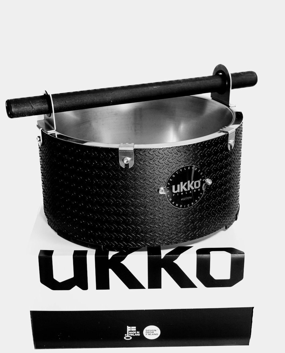 Med Ukko Kiulu XO Limited Edition Black kulmineras den finska bastukulturen. Bastuhinken är svarvad i Urjala och kantbearbetad i Österbotten – ett resultat av noggrant hantverk. Hinken rymmer 7,2 liter, väger 2 kg och har en ugnsbränd svart finish. Den är tillverkad av rostfritt stål och marinaluminium.